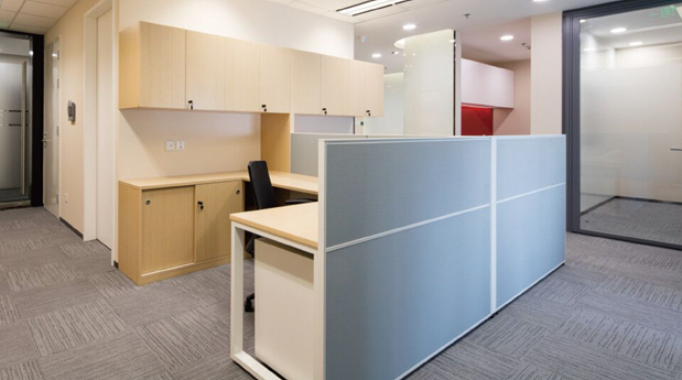 小型的辦公空間也要重視交流。將兩臺工作位獨(dú)立排列,合理配合收納空間,可以使工作